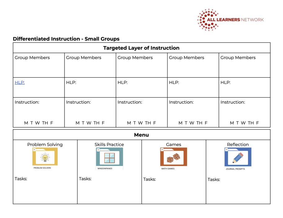 The All Learners Lesson Structure is a teaching framework so everyone can learn math with conceptual understanding. Through the use of an inclusive Main Lesson and a differentiated math Menu, we create a context for learning that can support success for a broad range of learners.